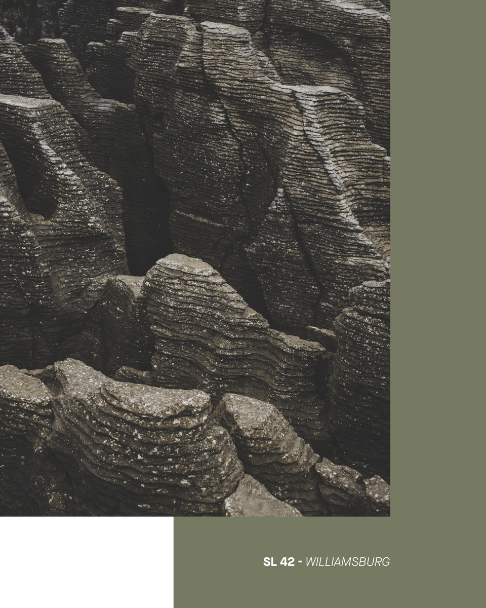In the army of shades of gray, Williamsburg is a military camp khaki, with a desert storm feel. Its recipe, red + green + yellow, makes it a refined, golden gray with a bronze tint rather than green.