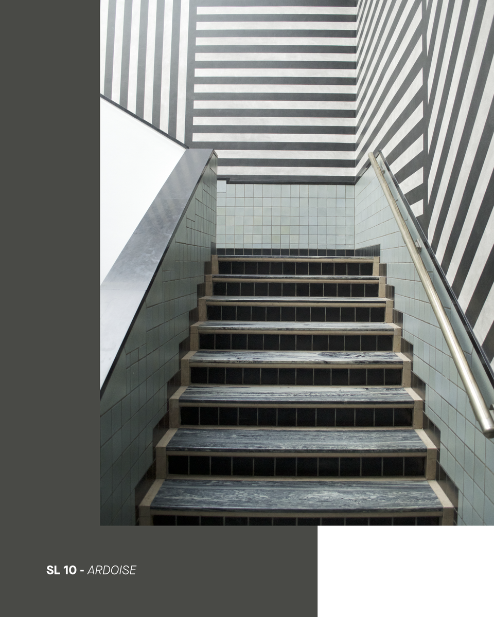 Dark yet luminous, this ashy shade climbs the gray scale to reach the peaks of slate and basalt. Highly mineral, it's a solid, masculine gray crowned with blue and yellow. Its muted, elephant-skin-colored depth brings our gray matter into line. Nonchalantly!