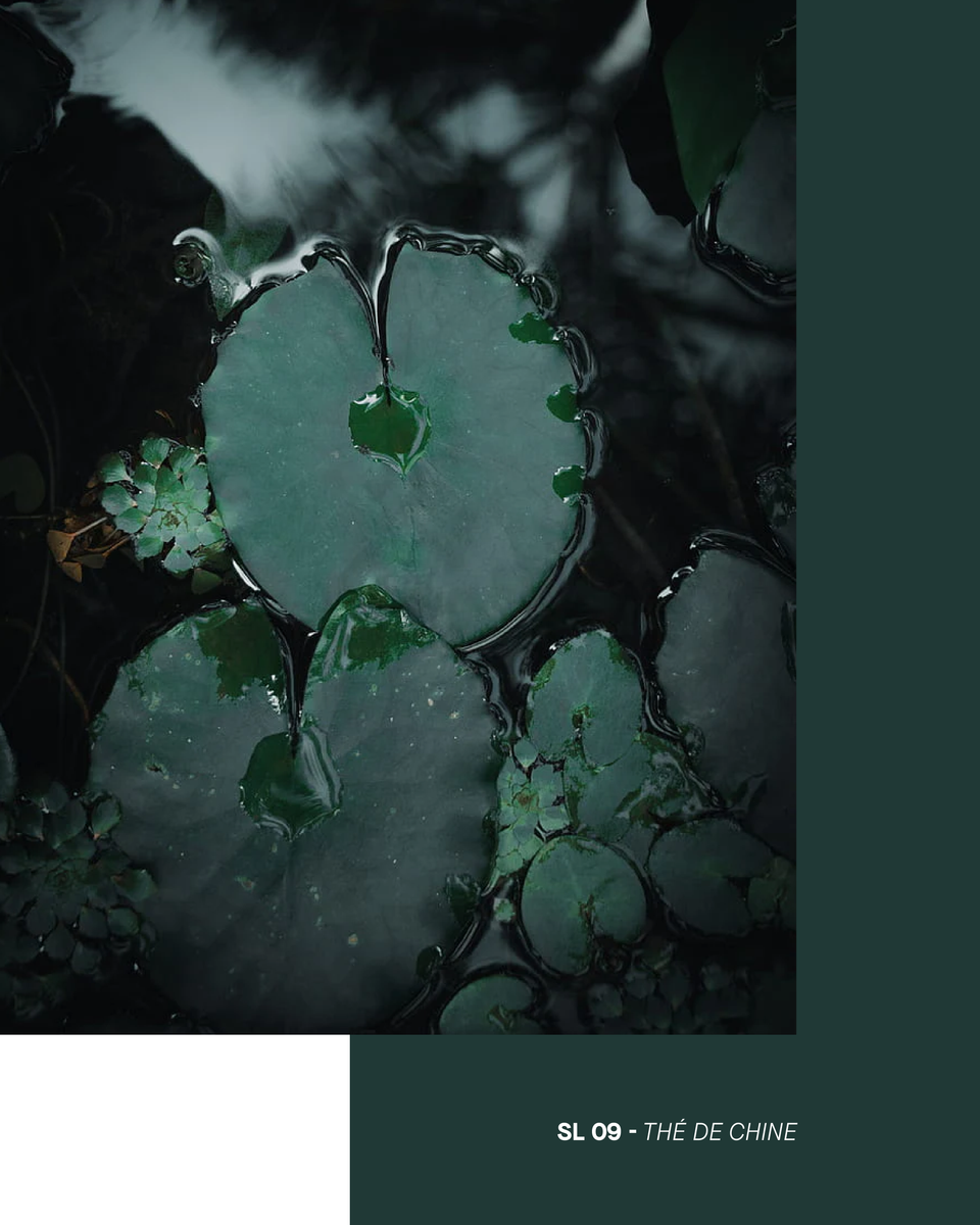 On the edge of black, the subtle Chinese tea strolls its elegance along the wooded paths of forest green. From temperate coniferous forests to humid equatorial forests, this precious shade makes no secret of its affinity with noble materials like velvet, brass, and marble.