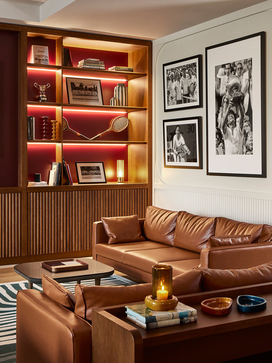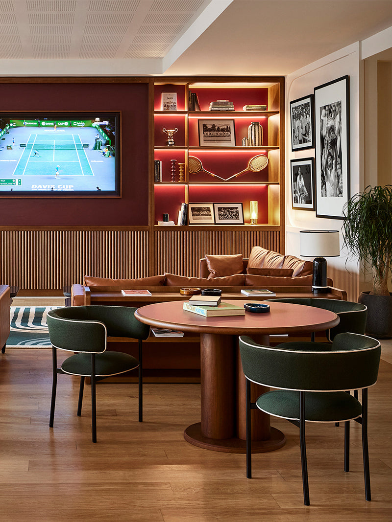 This very cozy and more isolated space invites you to gather around a tennis match.